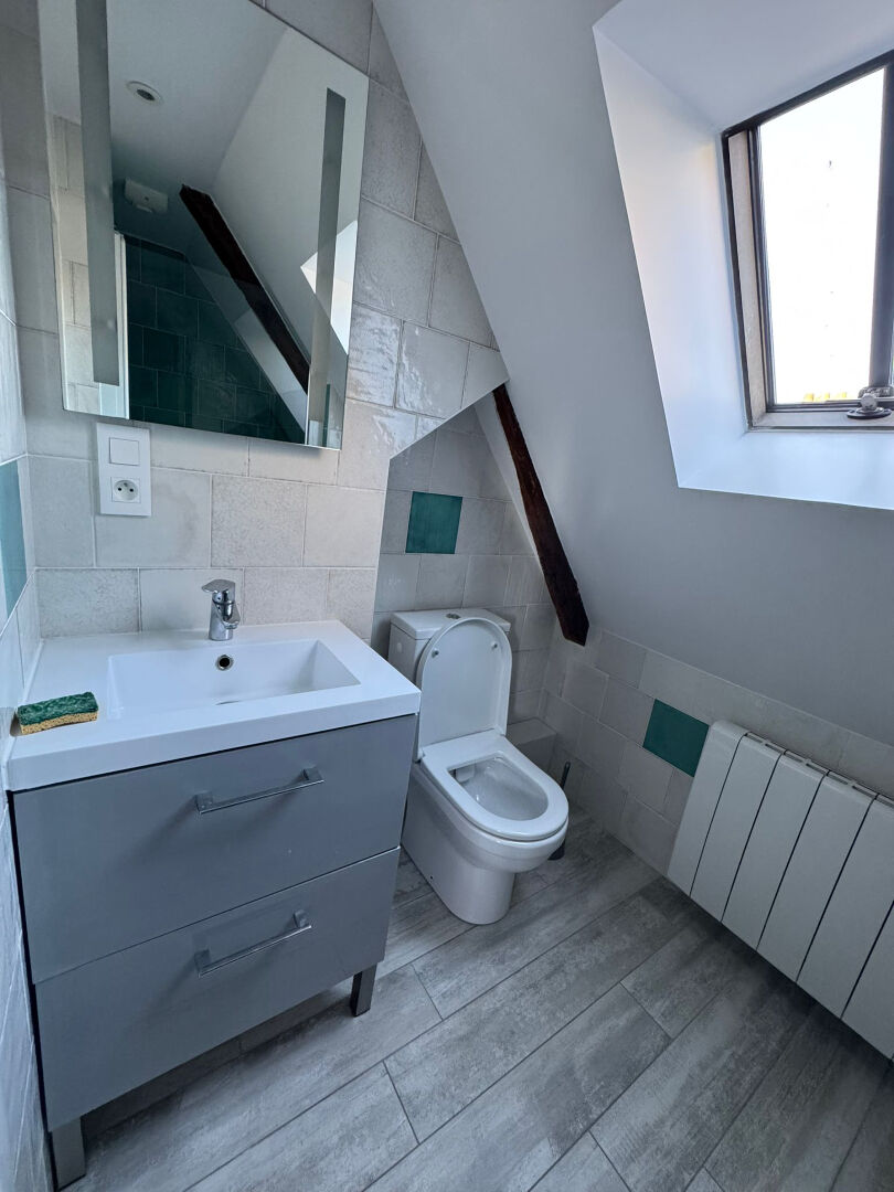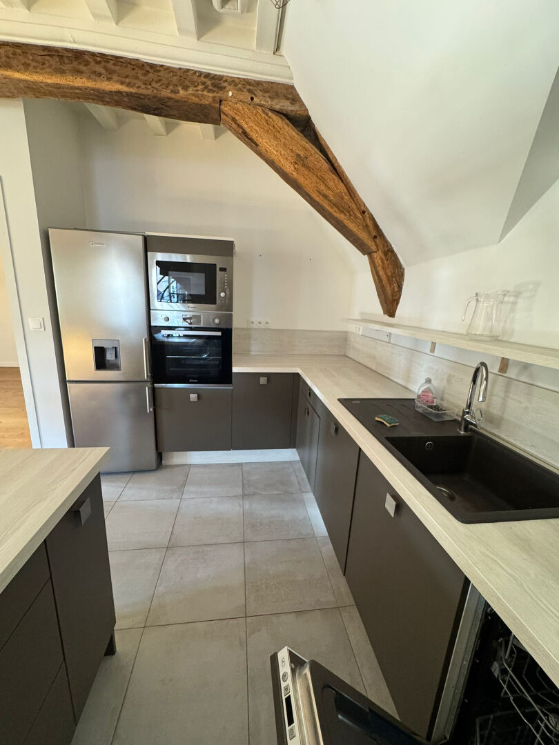 Situé au 2eme étage d'une résidence de caractère du 17ème siècle classé aux Monuments Historiques, entièrement rénové en 2015, cet appartement rare allie charme de l'ancien et confort moderne. L'immeuble, à la façade exceptionnelle et parfaitement entretenue, se distingue par son calme, sa propreté irréprochable et son emplacement idéal : tous les commerces, services et animations du centre-ville sont accessibles à pied, au pied de la résidence. L'appartement, d'une superficie d'environ 88 m², offre de très beaux volumes lumineux, sublimés par de superbes poutres apparentes et des murs en pierre qui lui confèrent une authenticité unique. Il se compose de : - Une entrée ouvrant sur une pièce de vie spacieuse et lumineuse, - Une cuisine équipée (plaques, hotte, frigo, four, rangements), - Une chambre au rez-de-chaussée avec salle d'eau et WC, - A l'étage : deux pièces complémentaires pouvant servir de chambres ou de bureaux, - Une seconde salle d'eau et un couloir desservant les deux pièces. L'appartement est loué non meublé, dispose d'un digicode d'accès, et se situe dans une copropriété calme et soignée où le charme de l'ancien a été conservé avec goût. Copropriété de 17 lots - dont 11 lots habitation. (Pas de procédure en cours). Charges annuelles : 540 euros.